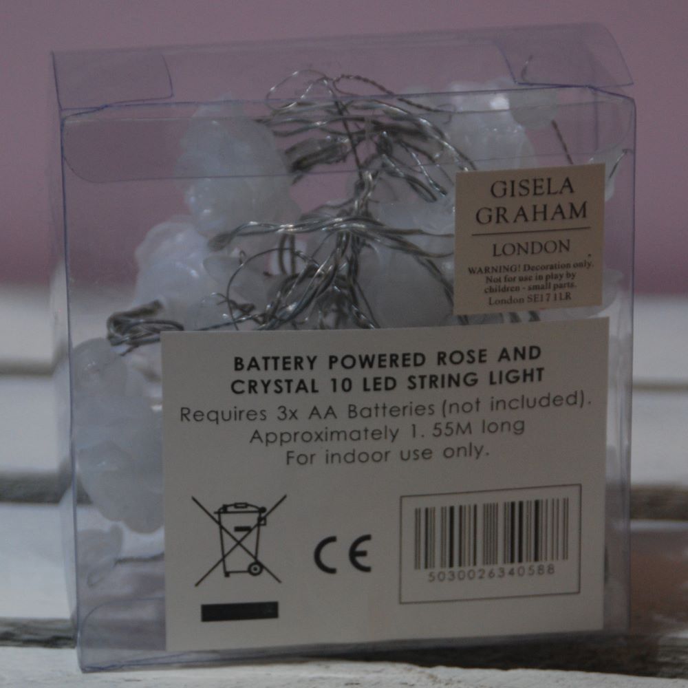 Stylish Rose & Crystal fairy lights from Gisela Graham. These rose shaped lights feature a lovely 3D rose and solid pearl shape giving a magical fairy-tale feel.