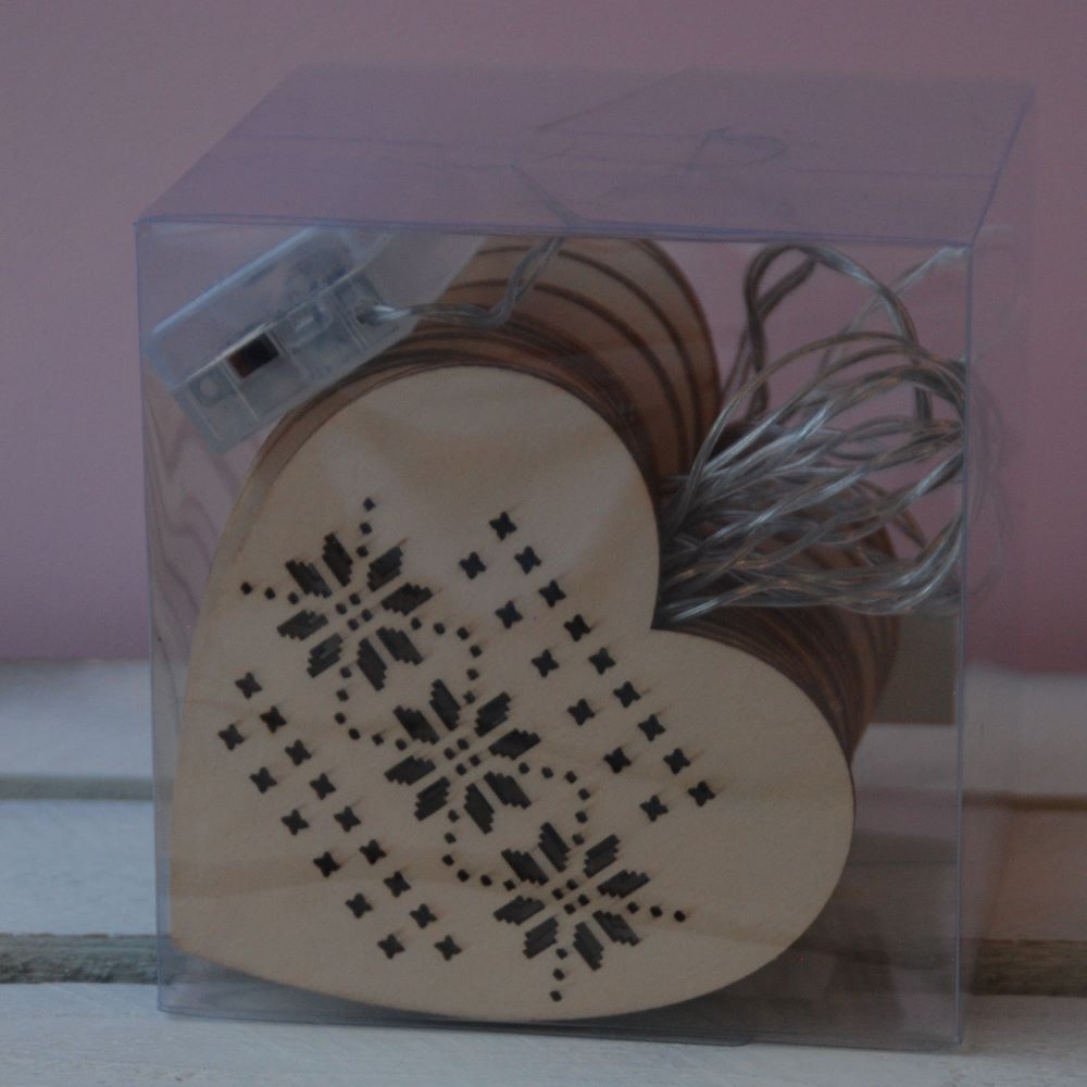 Stylish wooden heart fairy lights from Gisela Graham. These lights feature a lovely geometric floral pattern and are perfect to light up any room or intimate space.