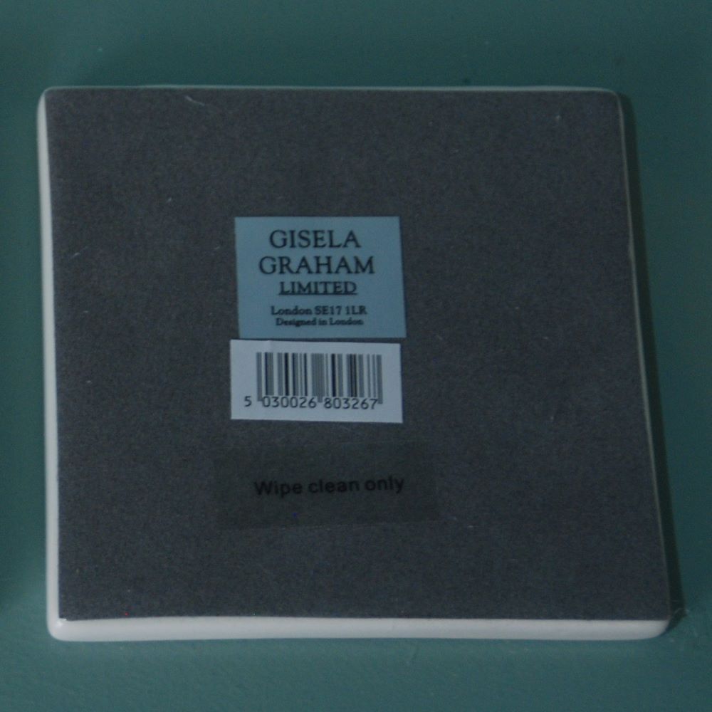 A ceramic coaster with a contemporary floral design from Gisela Graham. Ideal for brightening up your kitchen or office or a practical gift to brighten up anyone’s tea break. Could also be used under a vase etc.