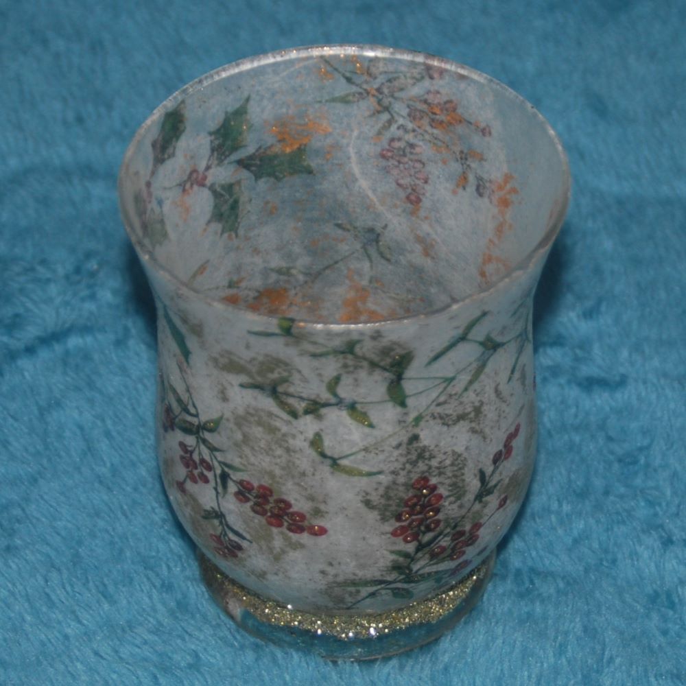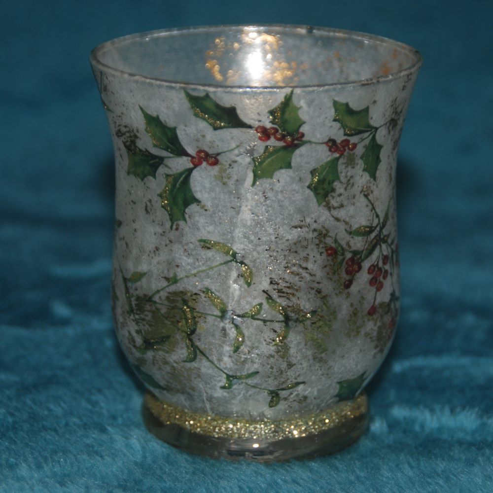 You are here: Home / Christmas / Glass Candle Holder – Holly