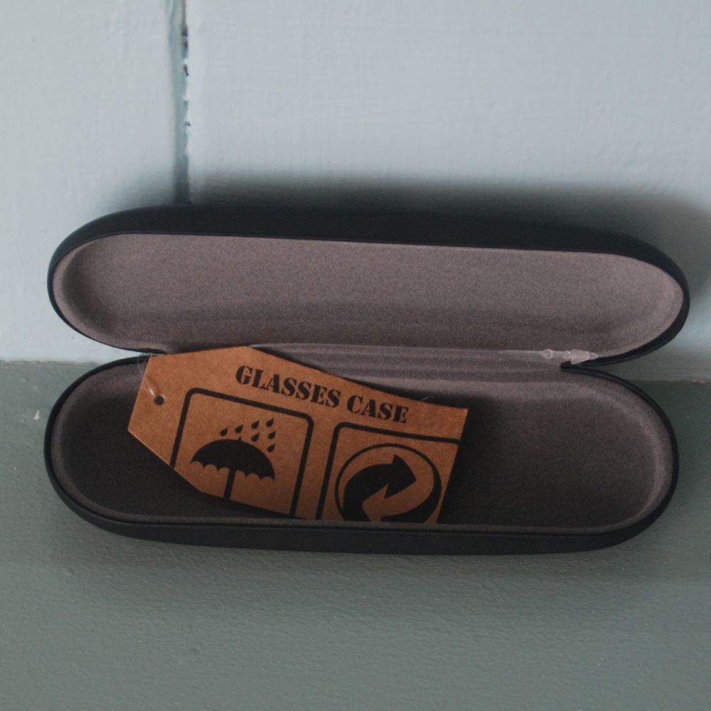 A stylish glasses case in black featuring a simple screen print glasses design. Part of the Really Good Tom’s Depot range. The perfect gift for any bespectacled man.