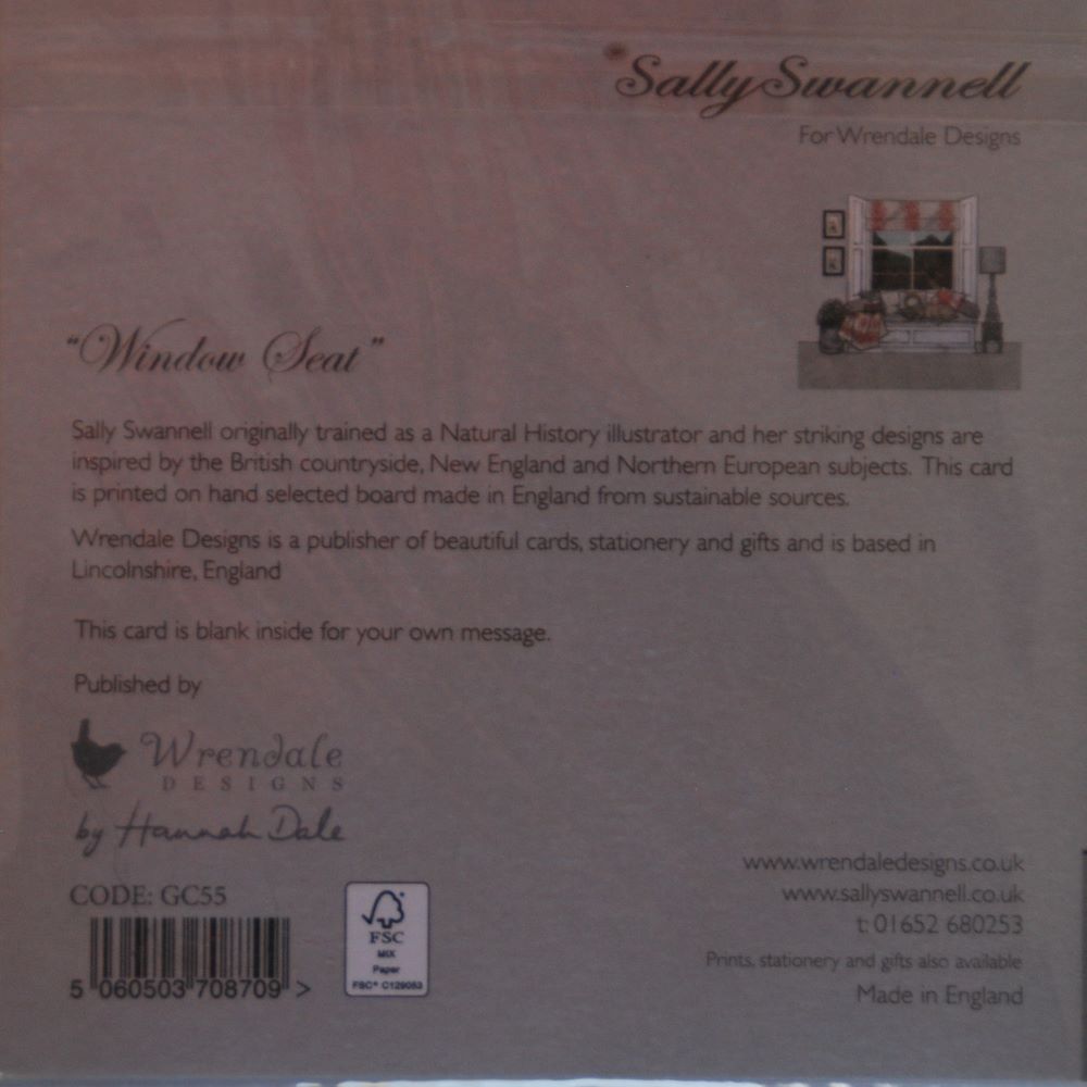 A beautifully drawn greetings card with the “window seat” illustration from Sally Swannell. A great way to send a little message for a special occasion this greetings card is Blank inside for your own personalised message.